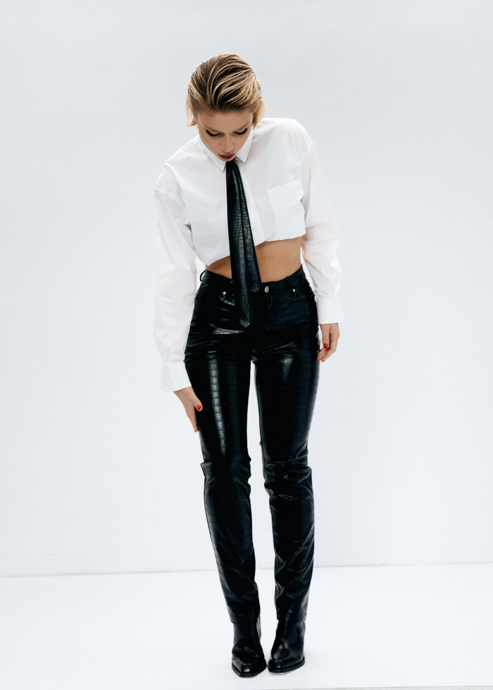 Коллекция MICKEY ROURKE выполнены из премиальной экокожи. Брюки прилегающего силуэта с накладными сзади.