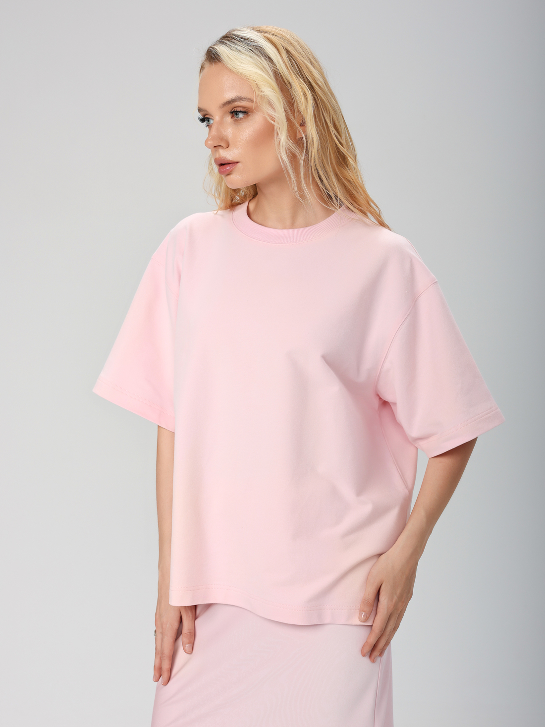 Базовая футболка — идеальный выбор для создания стильных и комфортных образов. Наша базовая футболка в уменьшенном варианте со спущенной линией плеча.