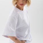 Базовая футболка — идеальный выбор для создания стильных и комфортных образов. Наша базовая футболка в уменьшенном варианте со спущенной линией плеча.