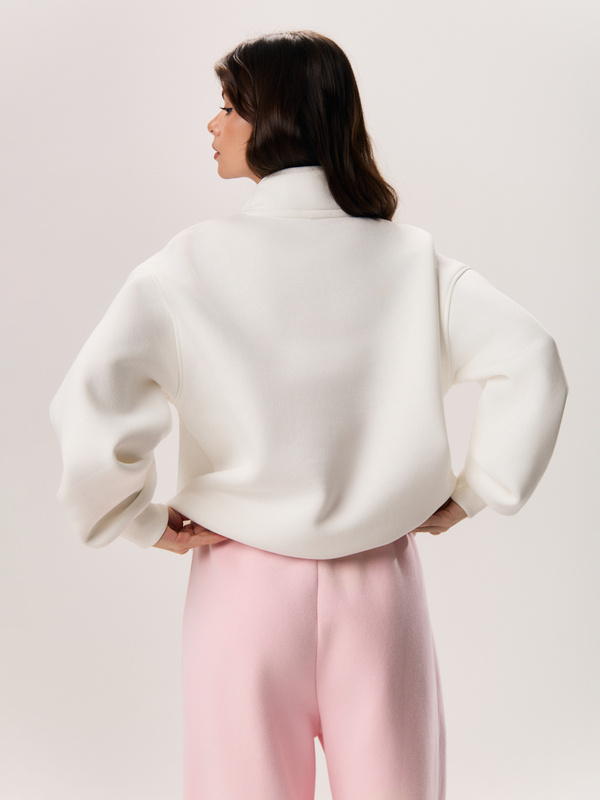 Свит «HARVARD’25» свободного кроя с воротником-стойкой, созданное для комфорта и повседневного стиля. Свитшот выполнен из мягкого трикотажа футер 3-х нитка с начесом, который сохраняет форму и мягко облегает тело. Манжеты рукавов и низ из эластичного кашкорсе обеспечивают аккуратную посадку.