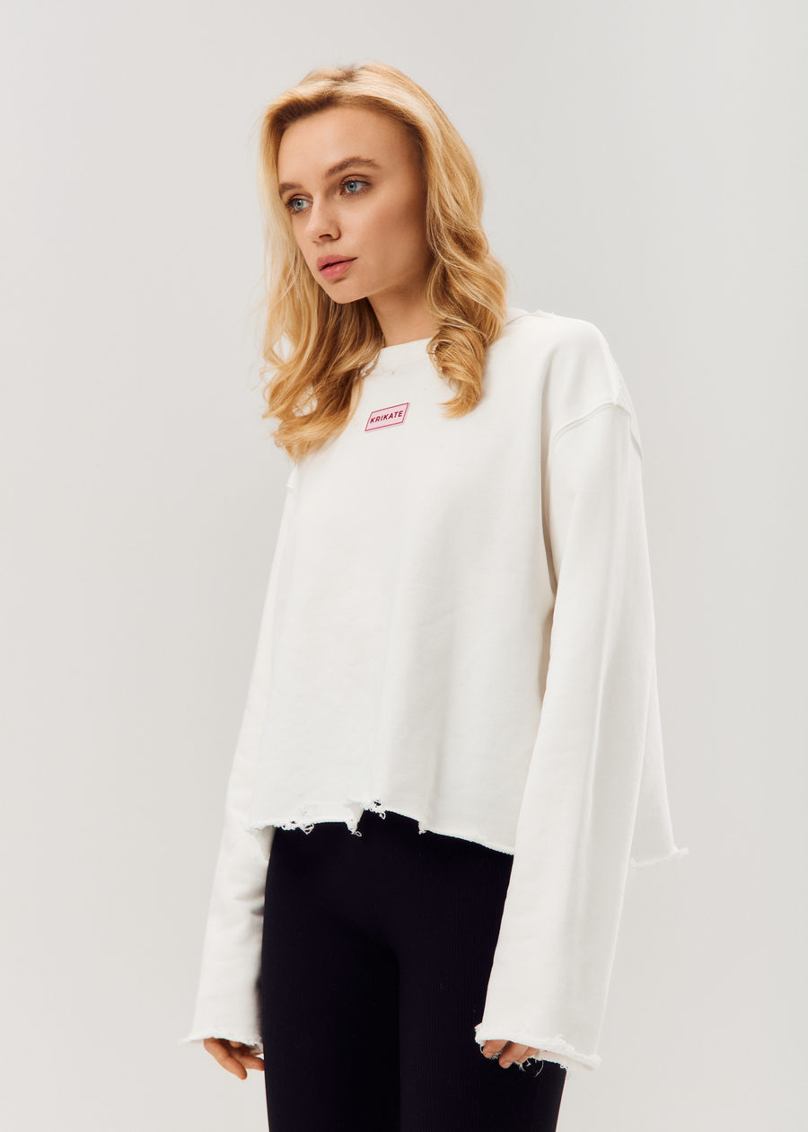 Укороченный свит умеренного оверсайз силуэта с накладными карманами. Свит на молнии.