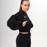 Укороченный свит умеренного оверсайз силуэта с накладными карманами. Свит на молнии.