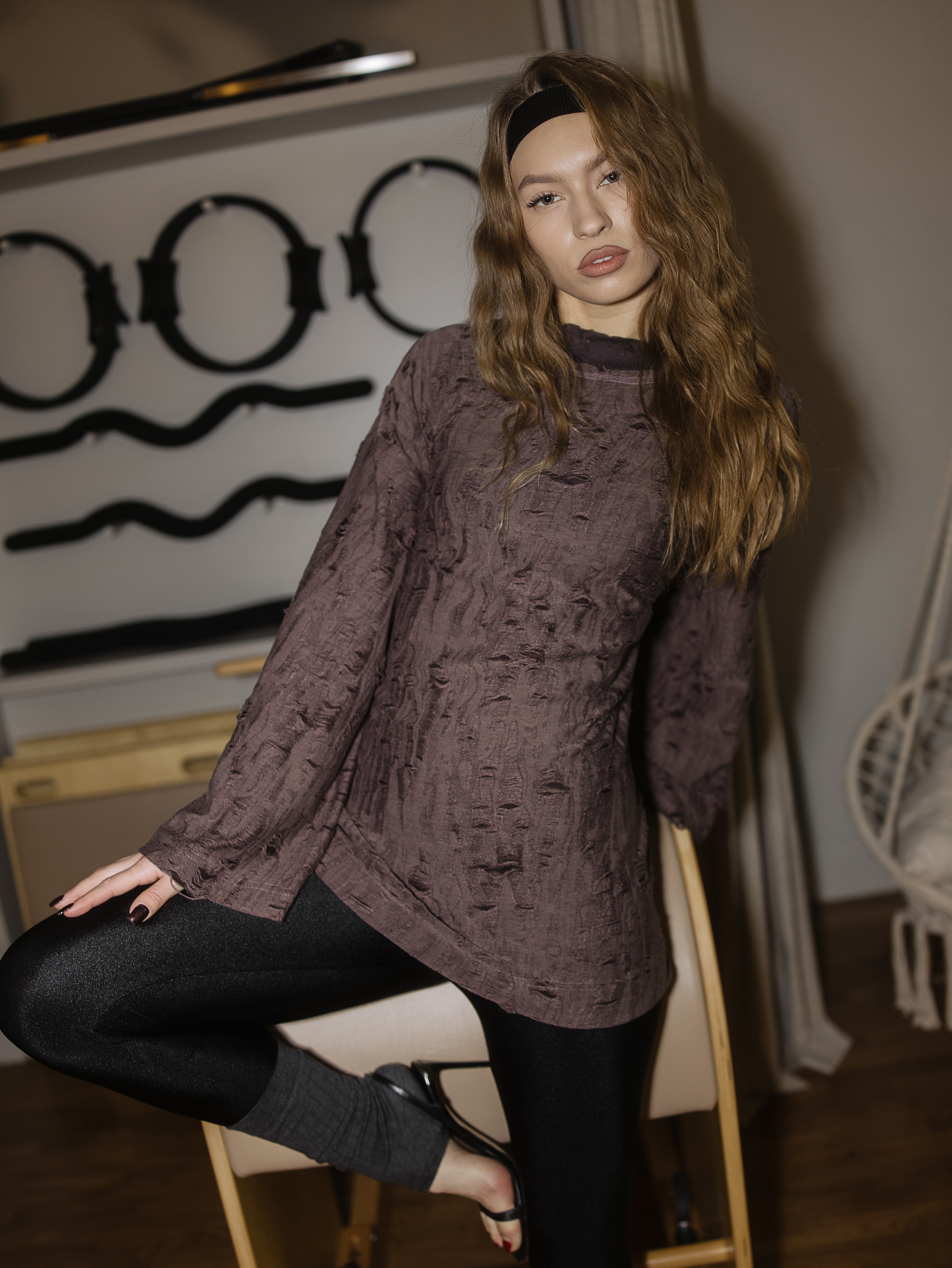 Платье TECHNO GIRL прямого силуэта, слегка расширенной к низу, без застежки, длиной до колена. Уникальный акцент платья — вставки поясов в боковые швы на уровне талии, которые имитируют рукава, создавая интересный визуальный эффект. Длинные втачные рукава, слегка расширенные книзу, добавляют образу нежности и легкости.