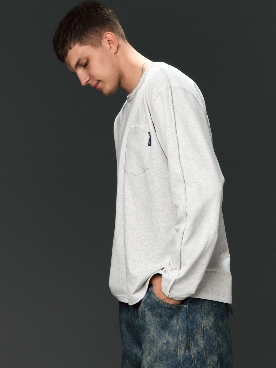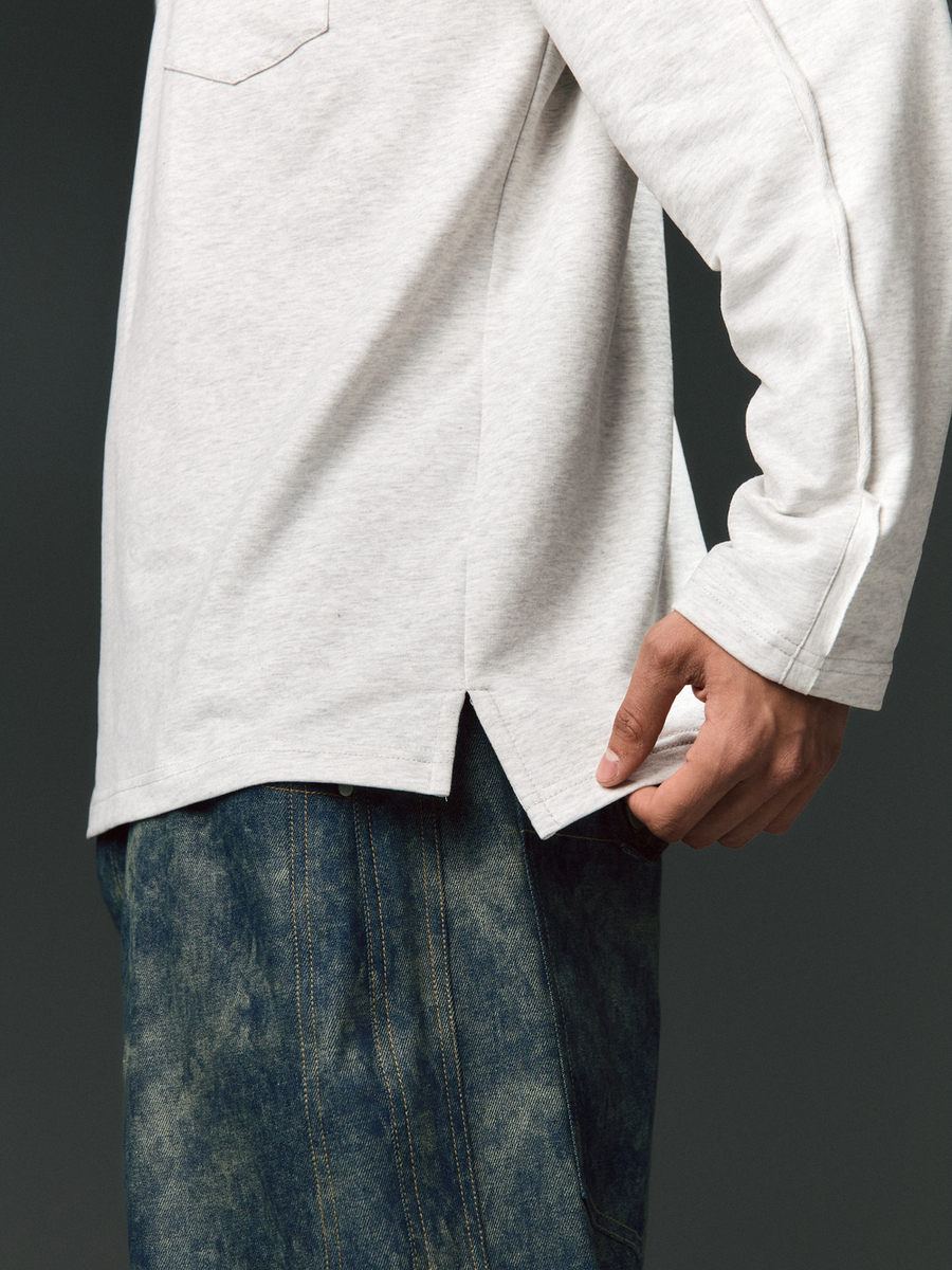 Мужской лонгслив “PLAY SAT”. Свободный лонгслив с круглой горловиной и асимметричным квадратным низом для современного и стильного образа. Изготовлен из мягкого трикотажа футер 2-х нитка, который обеспечивает комфорт и свободу движений. Накладной карман на груди добавляет акцент и делает дизайн уникальным. Идеален для повседневных городских образов с характером.
