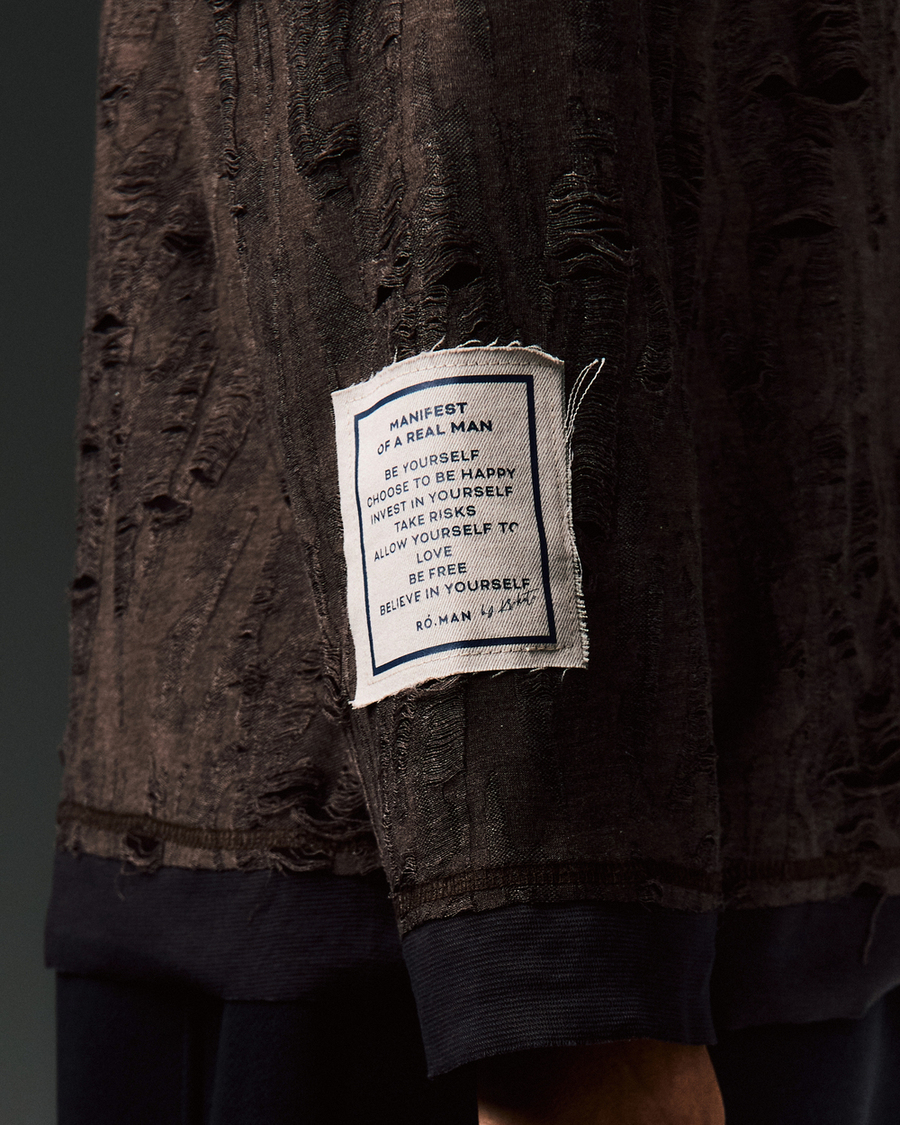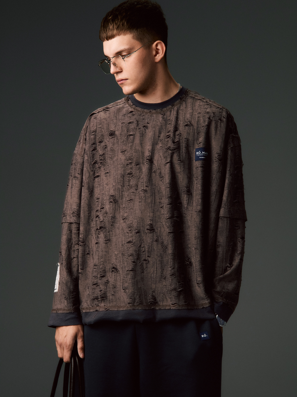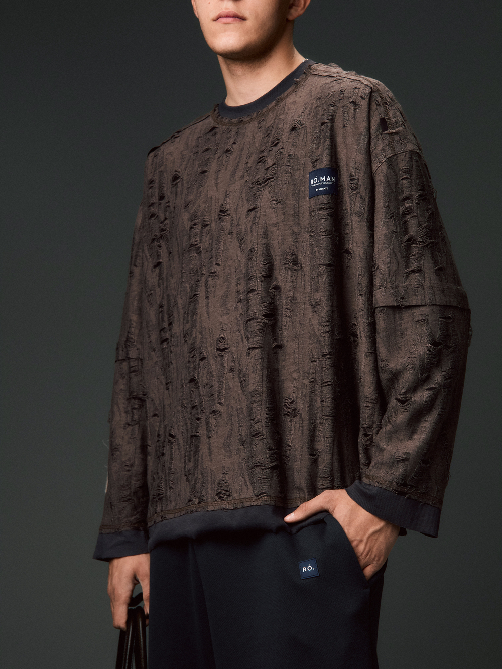 Лонгслив “TECHNO BOY” Свободный лонгслив с круглой горловиной и акцентной деталью на рукаве, придающей образу характер и дерзость. Выполнен из трикотажной ткани в стиле гранж с рваной фактурой, создающей эффект стильной небрежности. Идеален для смелых, городских образов, которые выделяются из толпы.