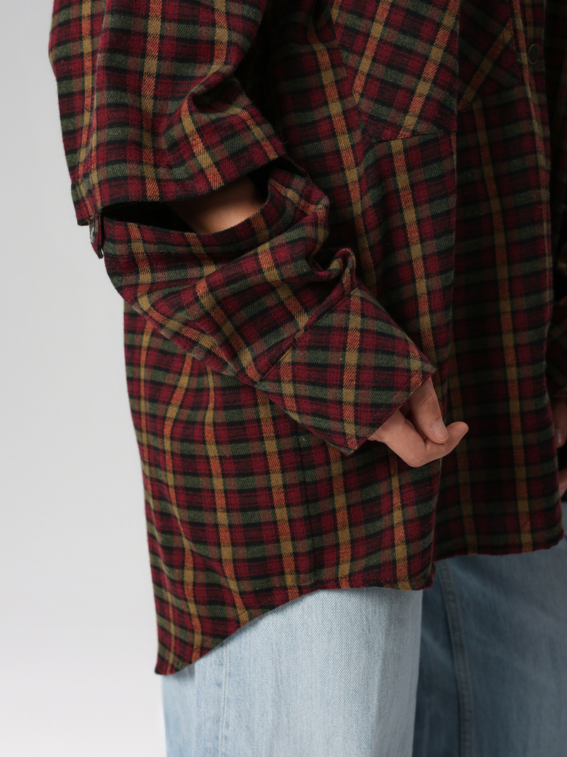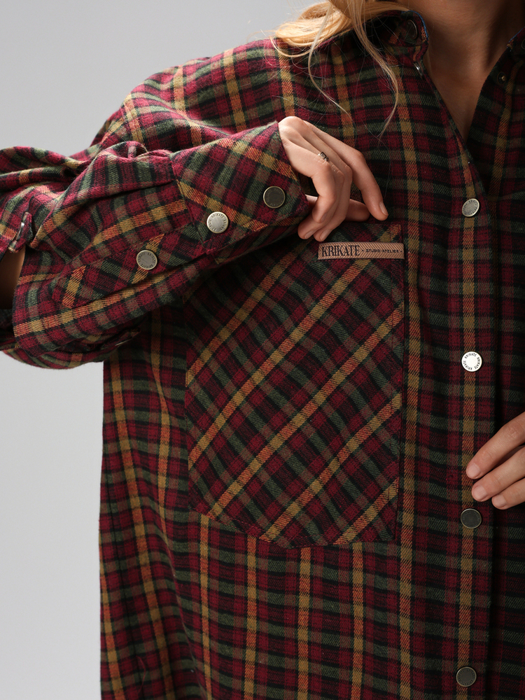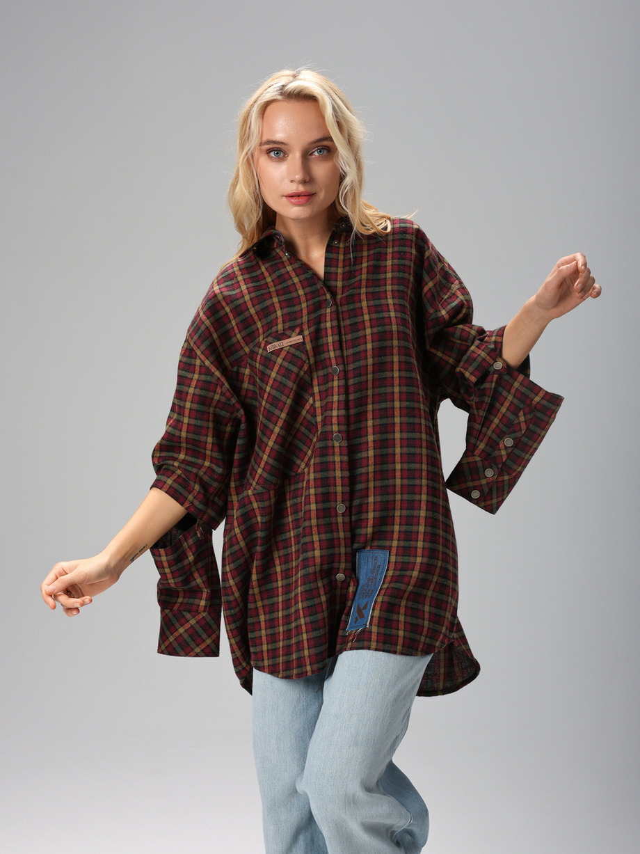 Рубашка KLAVI оверсайз силуэта со спущенной линией плеча и классическим рубашечным воротником. Фигурная линия низа прекрасно дополняет расслабленный дизайн рубашки. Благодаря брендированным кнопкам вы легко можете менять длину рукава. Свободный силуэт не сковывает движения, поэтому рубашку комфортно носить как второй слой.