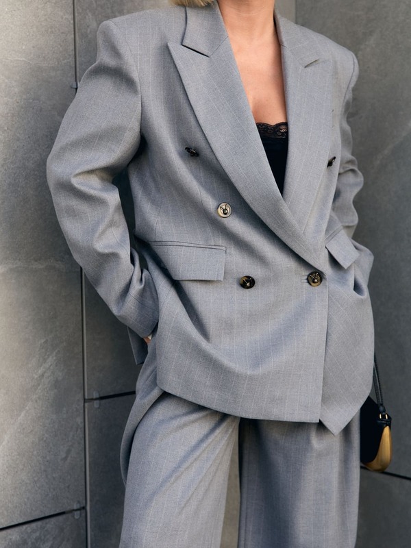 Изящный и элегантный жакет станет универсальной базой как повседневных, так и вечерних образах. Двубортный жакет, изготовленный из костюмной ткани. Воротник пиджачного типа отложной, с лацканами. Жакет с двумя шлицами.